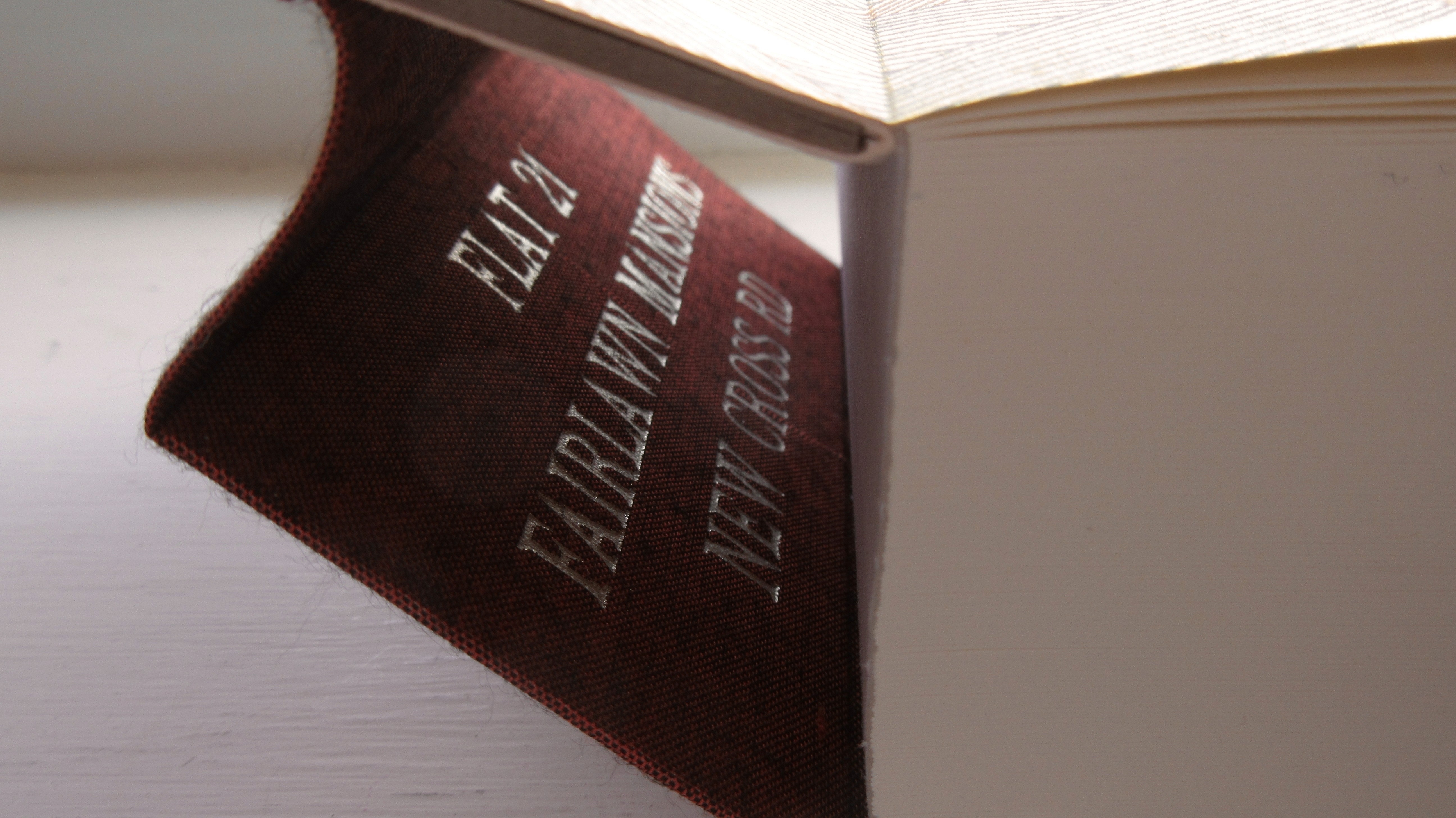 그러나 그 안의 내용물은 객관적인 정보가 아닌 두 명의 거주자가 함께 움직이면서 미세한 변화를 거친 공간을 추적·기록한 개인적인 이미지들이다. 이 두 요소를 함께 구성해보고자, 책을 제본할 때 제목을 책등의 바깥쪽이 아닌 안쪽에 기입하는 방식을 사용하여 책의 내지를 펼쳐야만 ―공간을 마주해야만― 숨겨진 책의 제목이자 주소를 알 수 있게 제작했다.