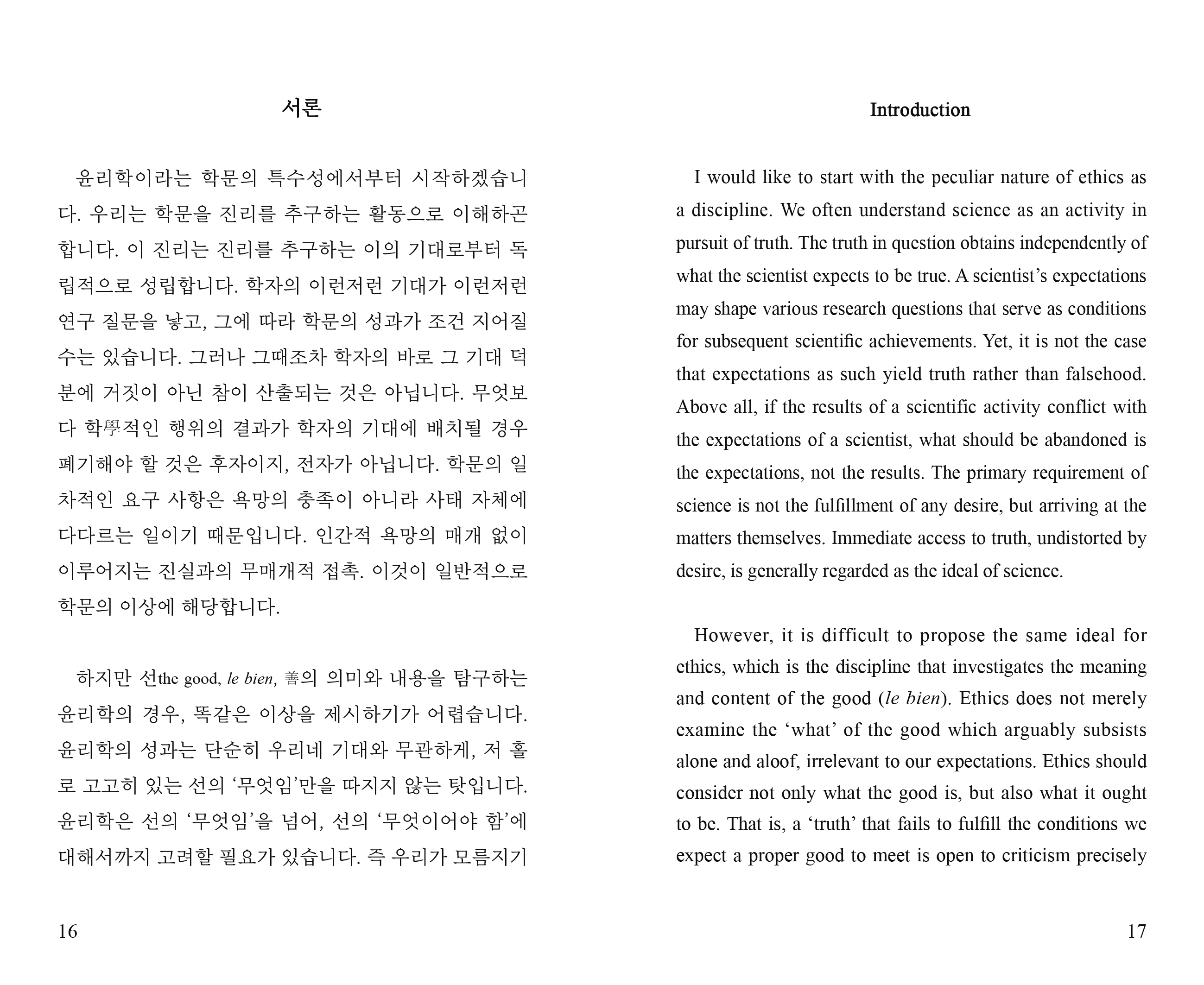한편으로 선은 우리를 진정한 우리들 자신으로 만들어 주는 자기의 표현물이어야 하지만, 다른 한편으로는 나를 위해서만 작동하는 사적 원칙이 아닌 복수의 개인에 의해 준수될 믿음직스러운 공적 규범이기도 해야 한다. 그러나 시몬 드 보부아르(1908~1986), 시몬 베유(1909~1943), 그리고 아이리스 머독(1919~1999)의 사유를 개괄하 고 비판하는 이 에세이는 선에 대한 우리의 두 기대들이 서로 양립 불가능할 수 있음을 조명한다.
